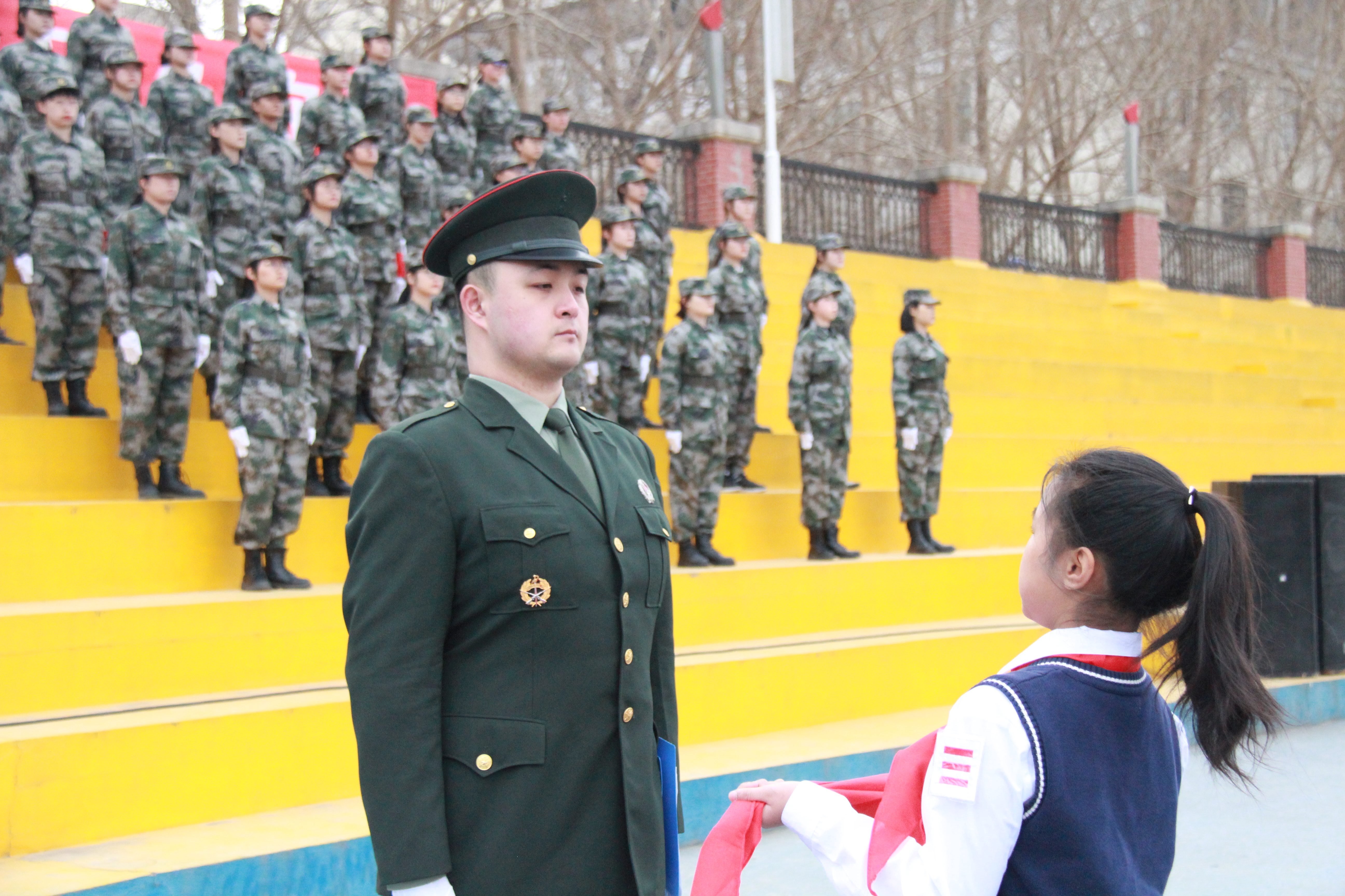 随后,哈尔滨学院附属实验小学学生代表为于璞同志佩戴了鲜艳的红领巾。