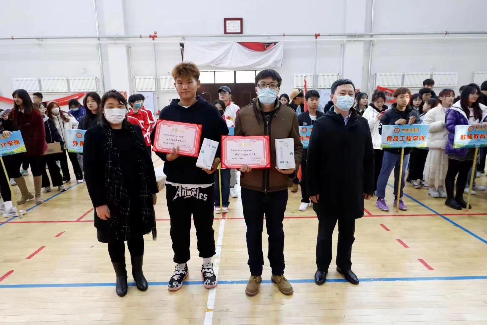 副校长吴旭峰和相关职能部门、二级学院领导为获奖单位代表颁奖。本次比赛促进了我校师生之间的友谊,搭建了师生之间沟通交流和互相了解的平台,为我校学生工作的顺利开展打下了良好的基础。