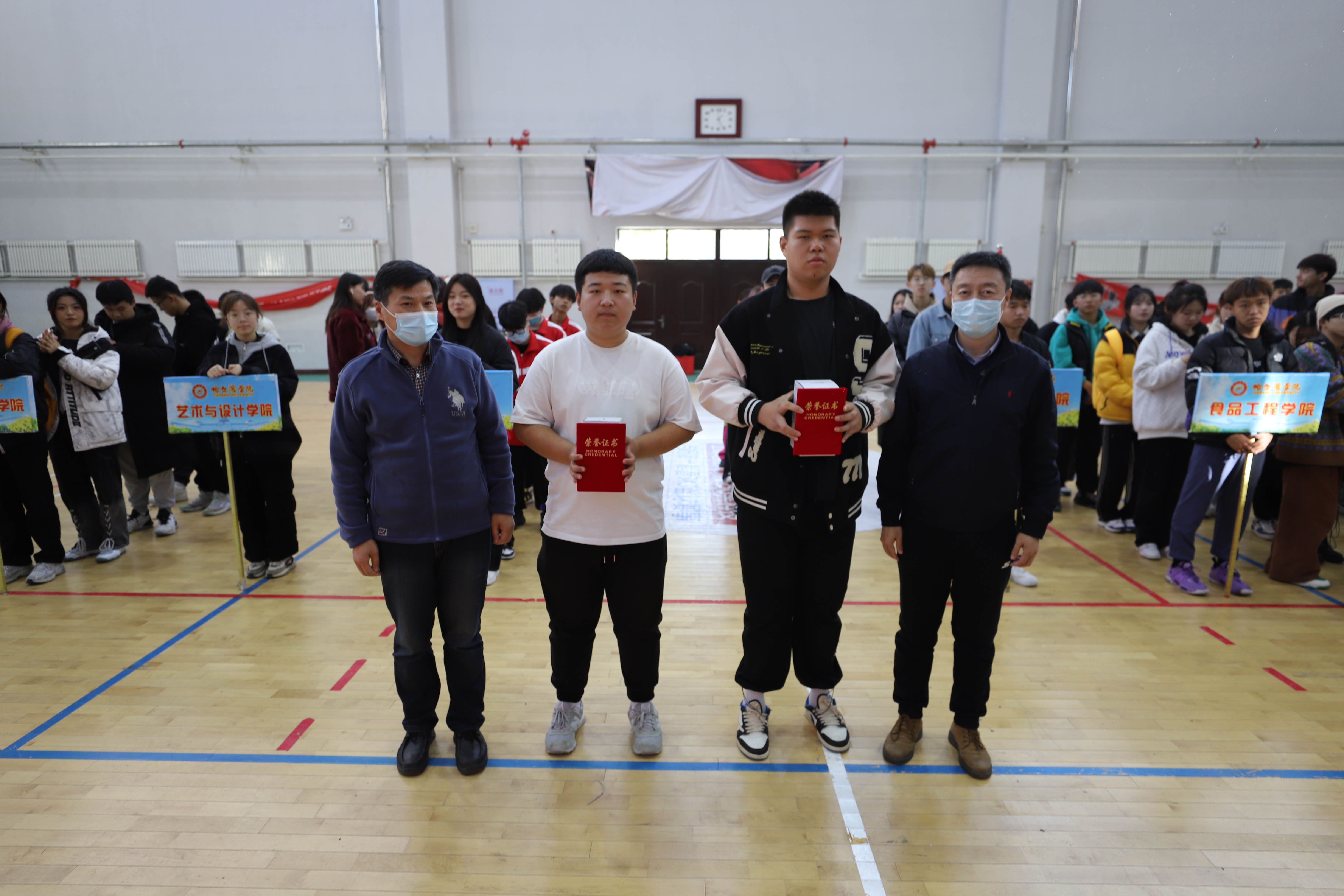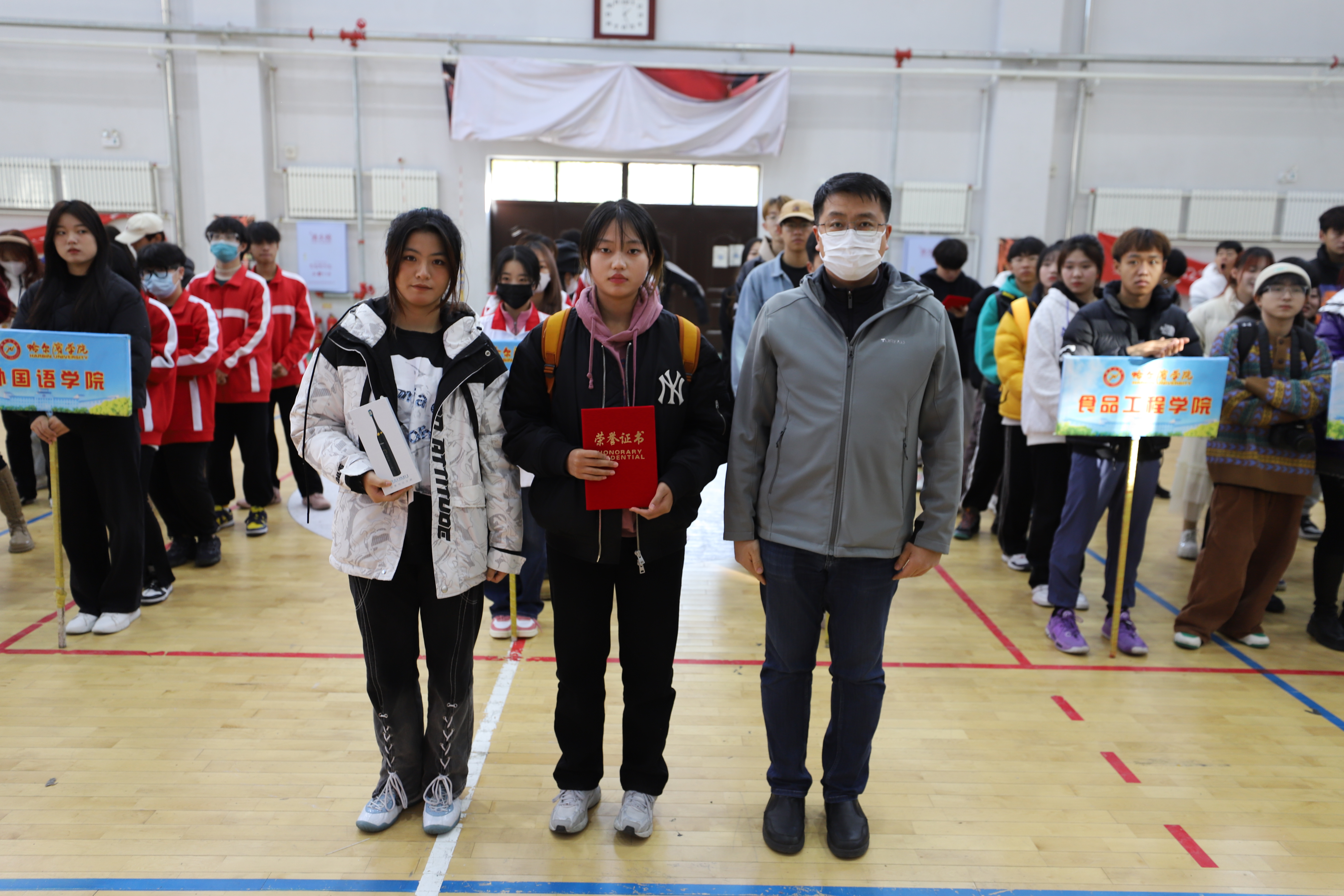 (文/张满)2022年10月28日13时,我校“喜迎二十大,奋进新征程”师生友谊赛闭幕式在9号楼体育馆举行。哈尔滨学院党委委员、副校长吴旭峰、学生处、体育学院、各二级学院主要负责人出席闭幕式。开赛两周以来,同学们和学工干部们在赛场上挥洒汗水,释放激情,以实际行动喜迎党的二十大胜利召开,圆满地完成了各项比赛任务,展示了哈院人良好的精神风貌。本次比赛的三个比赛项目获奖情况如下: