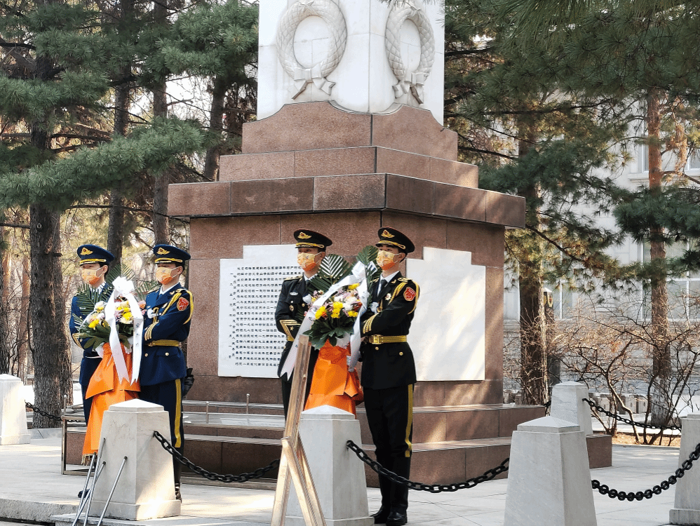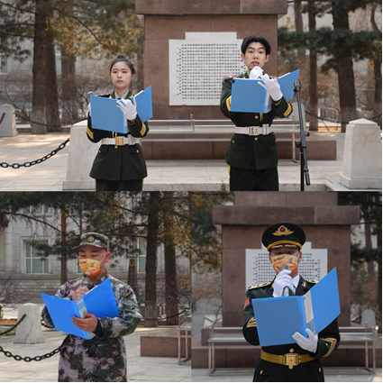 9时30分,全体师生胸戴白花,凝重肃立,静默致哀,共同缅怀革命先烈。师生们通过祭扫烈士纪念碑、向革命先烈敬献花篮等方式,向在中国人民解放事业中英勇献身的革命先烈们表达哀思之情。学工党支部书记于迪带领全体党员教师面向党旗和烈士纪念碑,重温了入党誓词;国旗护卫队全体队员重温了入队誓词,铮铮誓言、声声入心、坚定有力。