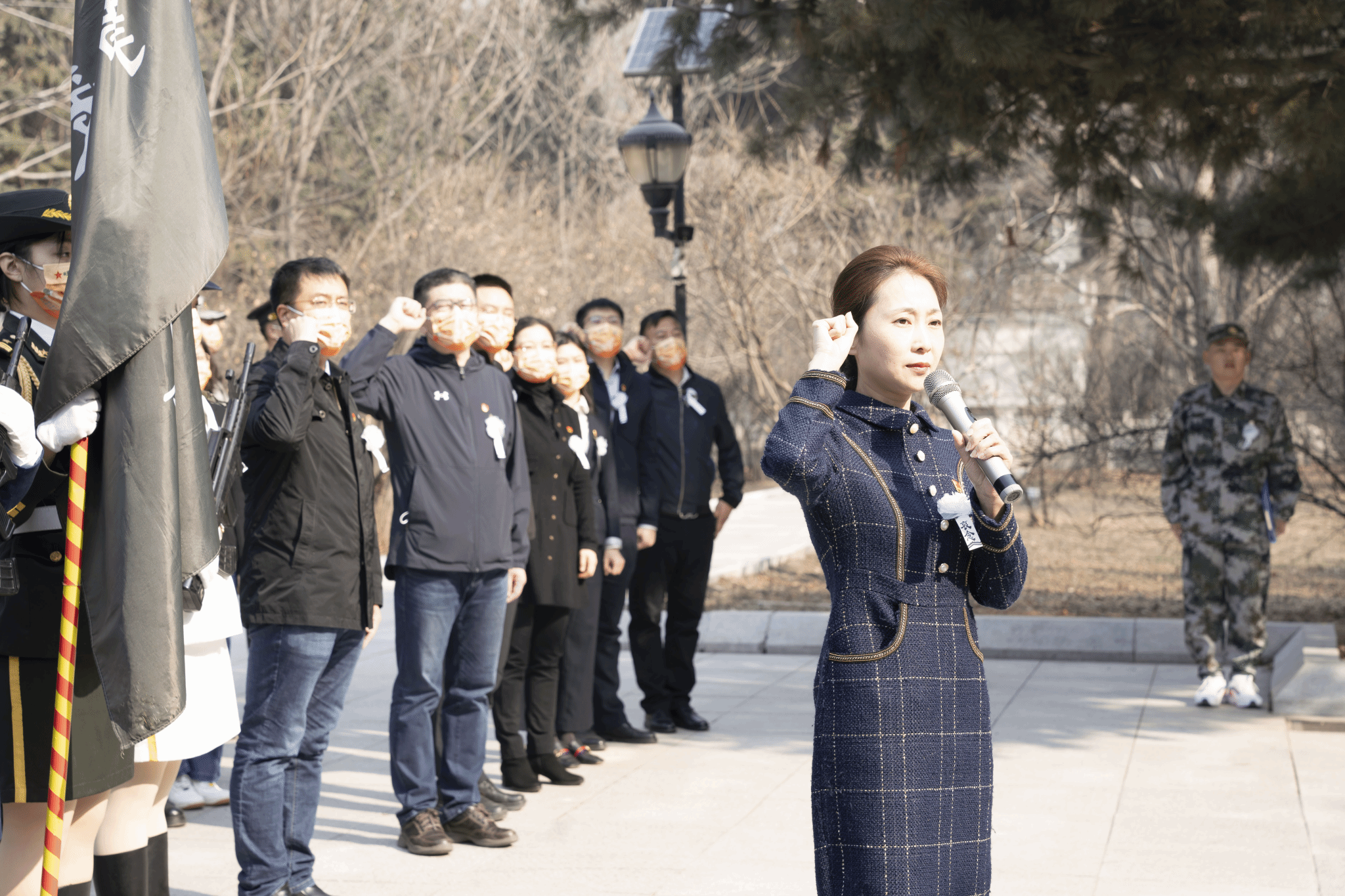 郁郁青柏掩忠骨,烈烈英魂诉长风。为赓续红色血脉,缅怀革命先烈,弘扬爱国主义精神。4月2日上午,学工党支部全体党员与我校大学生国旗护卫队学生来到市烈士陵园,举行了“传承红色基因、祭奠革命先烈”主题党日活动。校党委委员、副校长吴旭峰以普通党员身份参加本次活动。