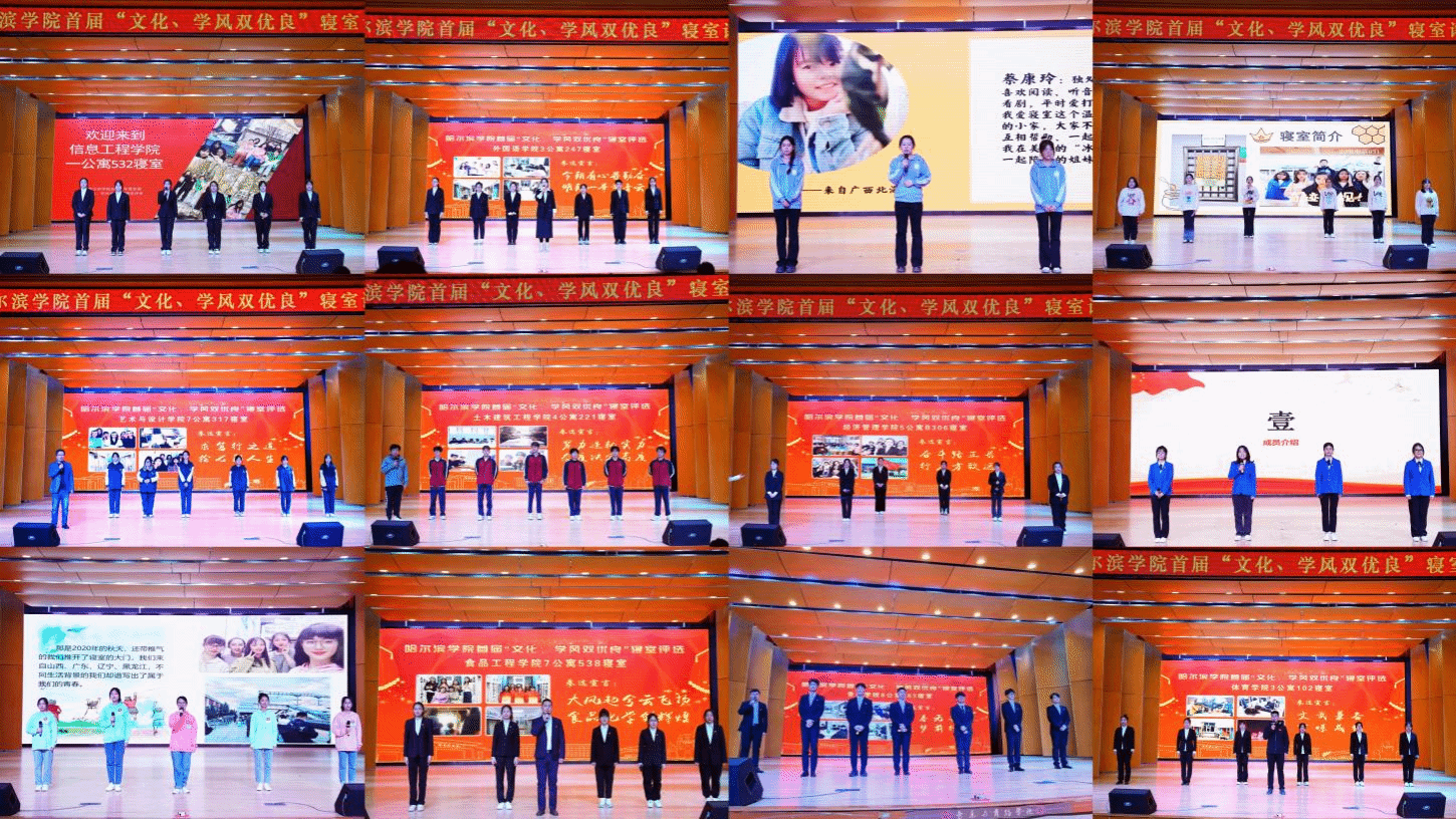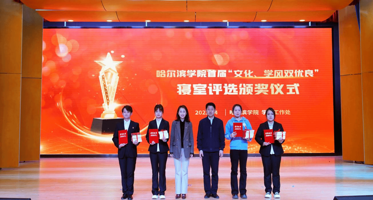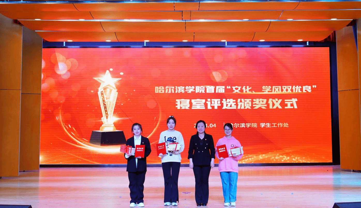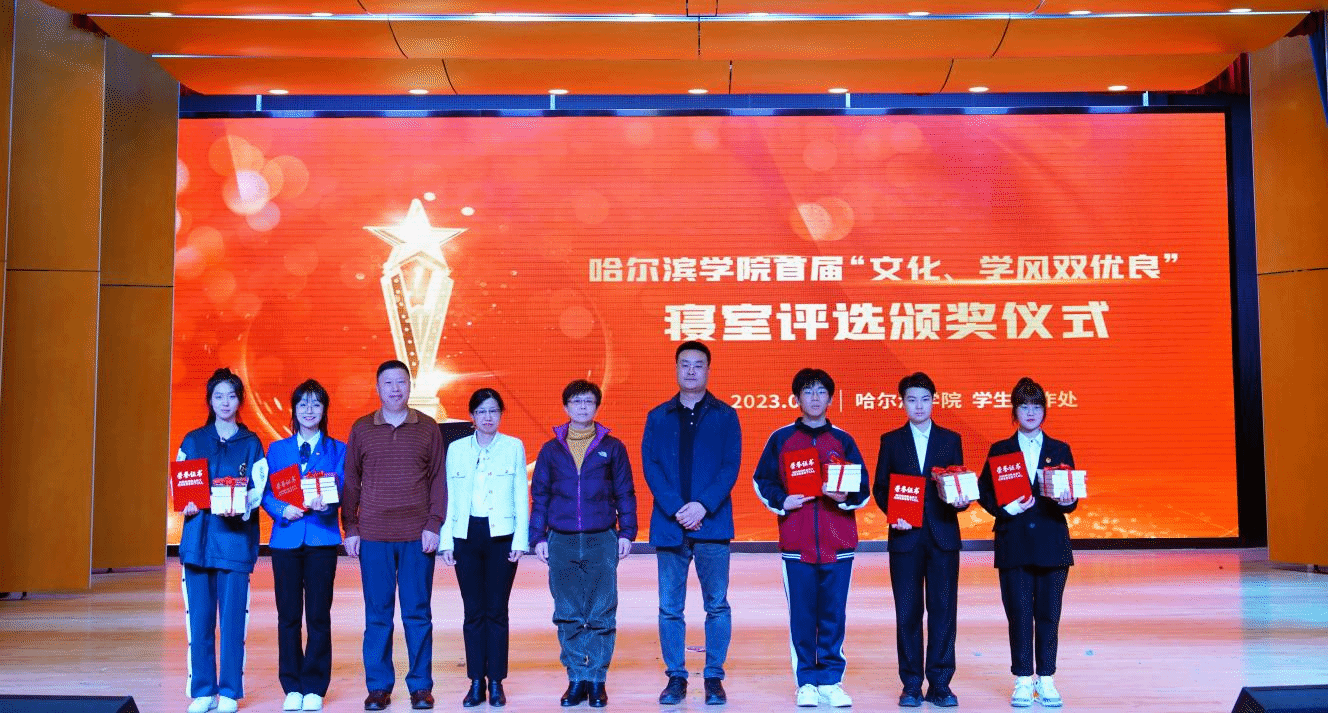 (文/张强)为深入学习党的二十大精神,全面贯彻落实习近平新时代中国特色社会主义思想,大力弘扬我校“知行统一、求真务实”的学风精神,持续加强学生公寓阵地建设,4月13日晚上,学校在小音乐厅举行哈尔滨学院首届“文化、学风双优良”寝室评选活动。党委副书记李娜出席活动,学生处处长于迪、各二级学院党委副书记、辅导员以及学生代表参加活动。本次评选活动邀请党委宣传部部长李铁岩、正处级辅导员丛全喜、教务处副处长王鑫、校团委负责人张玉娟、学生处副处长张强担任评委。