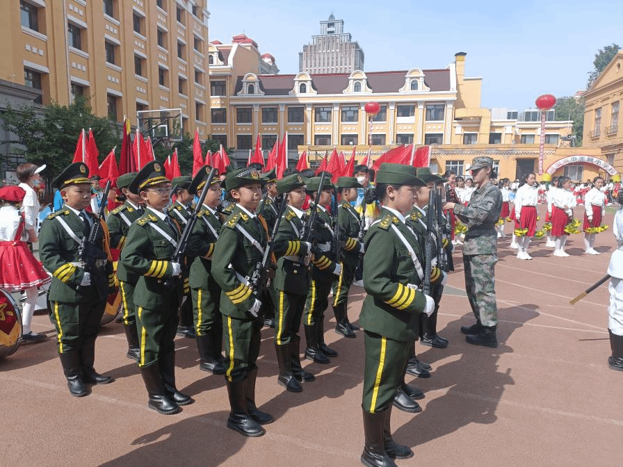 为引导广大青少年学生坚定理想信念,厚植爱国情怀,发挥高校资源优势,更好的服务地方发展。5月24日,我校大学生国旗护卫队选派21级音乐学二班王佳乐、21级学前教育二班刘宇欣两名队员赴哈尔滨市兆麟小学指导升旗训练。