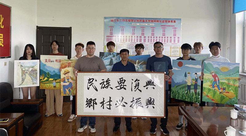 赠予仪式上,庞哲受学校委托将劳动教育“绘画、书法”作品全部赠予临江乡人民政府,以此表达助乡村振兴、龙江全面振兴全方位振兴的美好祝愿,并与临江乡党委相关领导就搭建校政共育平台,打造协同育人新模式进行深入探讨。