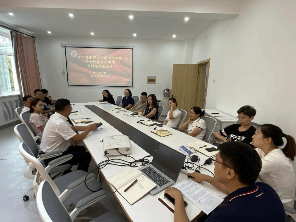 8月25日下午,在1号教学楼心理中心会议室,学工党支部召开学习贯彻习近平新时代中国特色社会主义思想主题教育专题组织生活会。支部书记于迪主持会议,支部全体党员参加会议。
