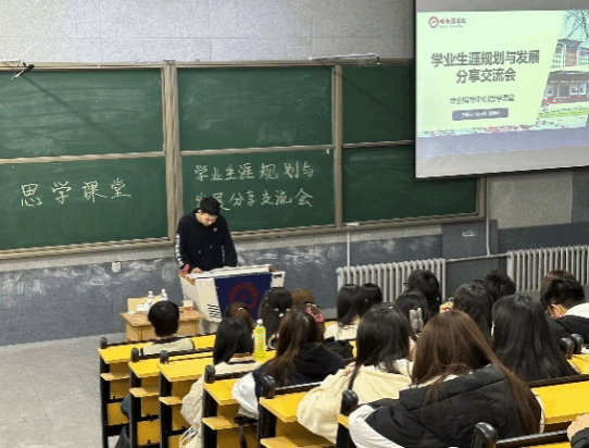 分享中,现场学业交流气氛浓厚。学长学姐与现场学生进行互动交流,答疑解惑,提供了实用建议和指导,同学们获益匪浅。