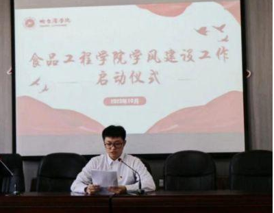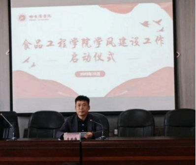 (文/侯成成)为涵养优良学风,营造浓厚的学习氛围,构建优良学风建设长效机制。食品工程学院于10月25日举行学风建设工作启动仪式,会议采取线上线下相结合方式进行,覆盖全院师生。食品工程学院党政领导、教师代表、全体辅导员出席本次仪式,仪式由学工办副主任侯成成主持。