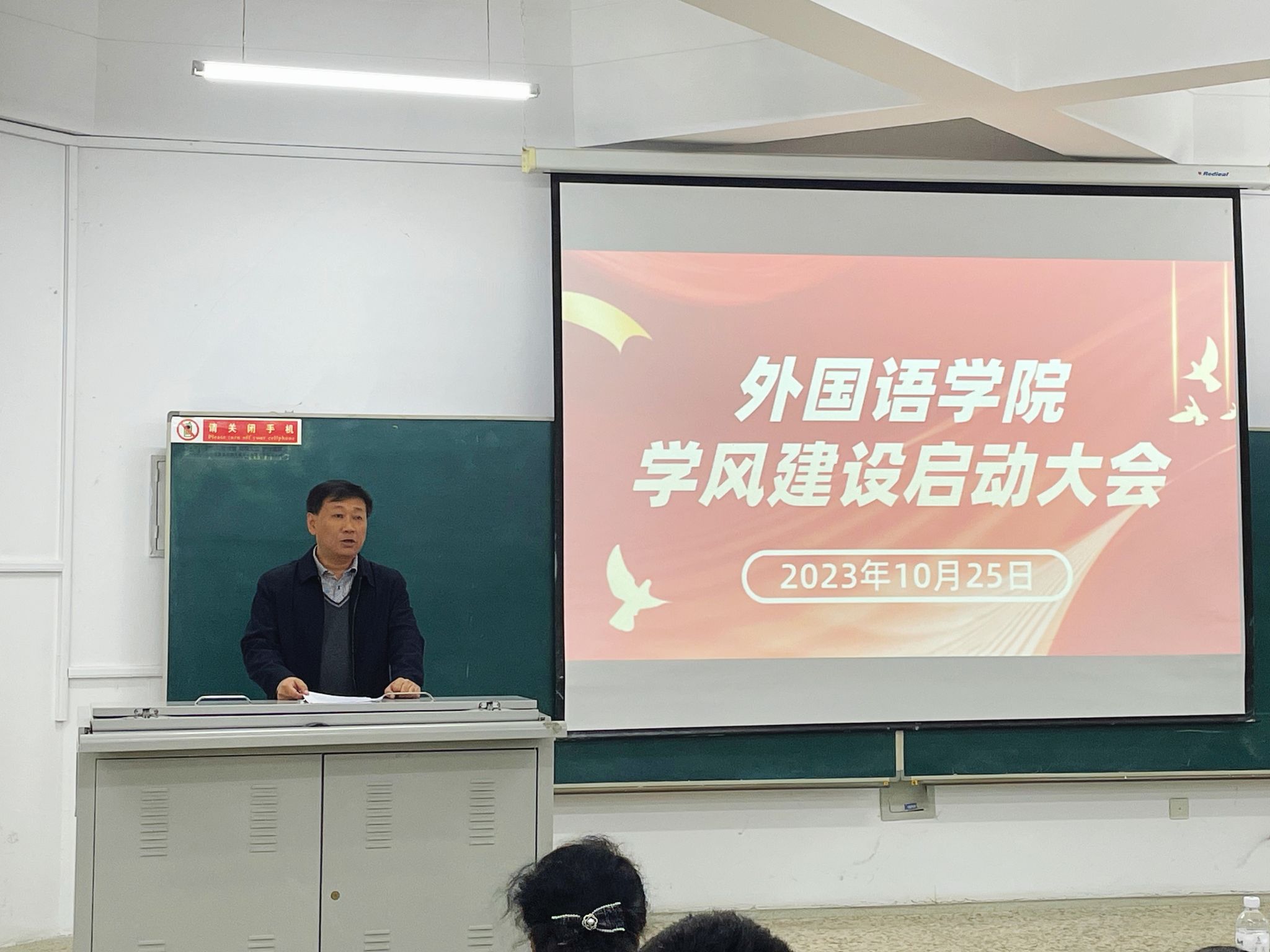 (文/王笑悦)为进一步贯彻落实立德树人根本任务,形成“以教育立学风、以榜样树学风、以活动促学风、以交流育学风”的学风建设新格局,不断健全学风建设长效机制,提升育人实效,营造风清气正的学习氛围,我院贯彻落实《哈尔滨学院学风建设实施方案》的总体要求,于10月25日在5112组织召开学风建设启动大会,本次大会由外国语学院党总支书记冯丽杰主持,哈尔滨学院副校长于少鹏、外国语学院院长孙延弢、商务英语系主任陈夺及我院全体辅导员出席会议,2022级和2023级学生线下参会,2021级和2020级学生线上参会。