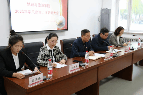 (文/刘彤)为了深入贯彻党的二十大精神,落实立德树人根本任务,持续加强和改进学风建设,优化学风建设长效机制,营造良好的学习氛围,提高人才培养质量,地理与旅游学院于10月25日下午在1160会议室召开2023年学风建设工作启动大会,方永秋书记主持会议,学院班子成员、各专业系主任、专业负责人、教务办主任、学工办主任以及2021,2022,2023级学生代表参加。