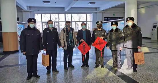 我校艺术与设计学院党总支书记、哈尔滨市书法家协会副主席孙国辉,黑龙江省高等院校书法协会理事付伟刚老师书写了各种艺术风格的“福”字和书法作品,哈尔滨学院黑龙江四大精神文创展览馆准备了年货,由保卫处处长李家强组织并带领保卫处部分党员干部把学校春节的问候送到了工作在一线护校值班的保安手中,感谢他们在疫情期间为学校的付出的辛苦。