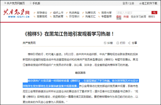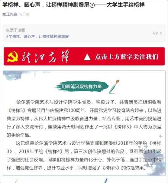据悉,这已经是该支部和分团委第三次创作类似题材的作品,其中《榜样3》、《榜样4》连续两年在中组部、中共黑龙江省委组织部、中共哈尔滨市委组织部官微、官网刊发,社会反响强烈。