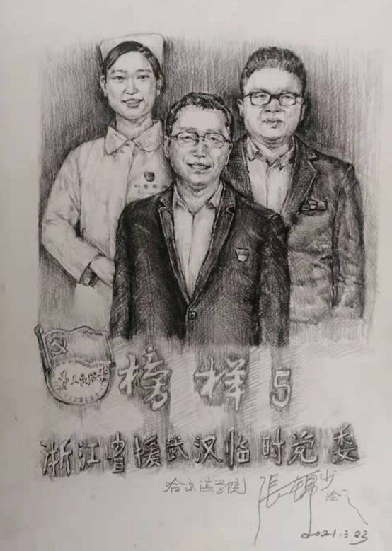 在观看之后,学生党员、积极分子、共青团员把组织收看《榜样5》专题节目与庆祝建党100周年、开展党史学习教育结合起来,以先进的典型为榜样,从伟大抗疫精神中汲取奋进力量,结合专业,用艺术审美的视角进行了深入的研讨交流,连续用了多天的时间,创作出了一批以《榜样5》中的人物事迹为题材的手绘文创作品。