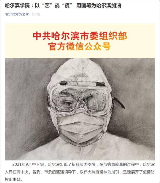 为了弘扬伟大抗疫精神,讲述哈尔滨人的抗疫故事,由哈尔滨学院团委、艺术与设计学院联合举办的以“艺”战“疫”为哈尔滨加油主题绘画作品展,10月7日在哈尔滨学院黑龙江四大精神文创展览馆启动。展览旨在弘扬时代主旋律,传颂哈尔滨人民抗击疫情的精神,本次活动由校大学生艺术创作协会、艺术与设计学院分团委协办,艺术与设计学院学生党支部承办,200余名学生参与了创作,征集作品300余幅。