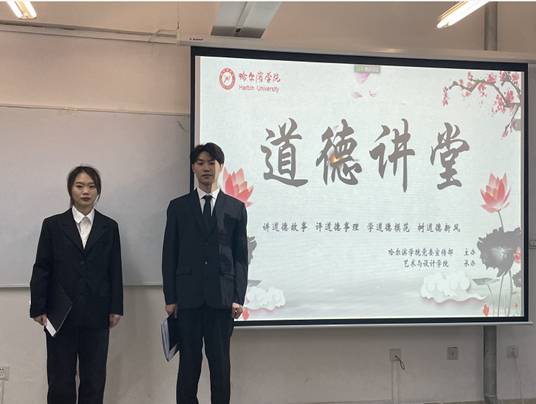 艺术与设计学院党委书记孙国辉、学生工作负责人郭鹏程、辅导员郭忠志、赵健、孙家宝及100多位学生参加了本次活动。本次道德讲堂活动共分为听歌曲、讲故事、看视频、诗朗诵、谈感想等五个环节。
