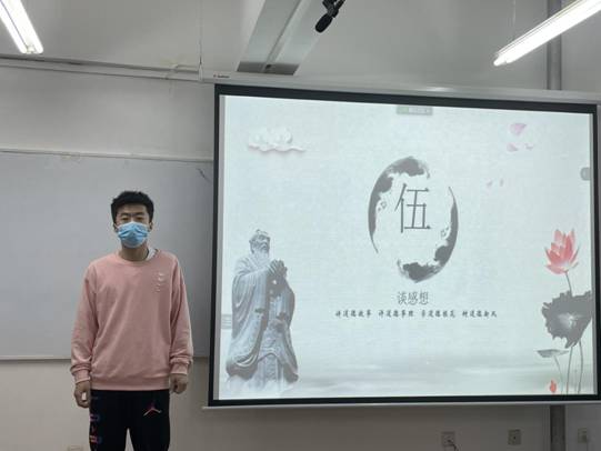 第五个环节是谈感想,王昱栋、张梦遥两位同学就今天的道德讲堂内容谈自身的切实体会,表达了自己的收获与感悟。