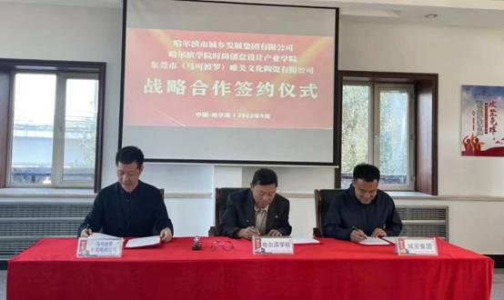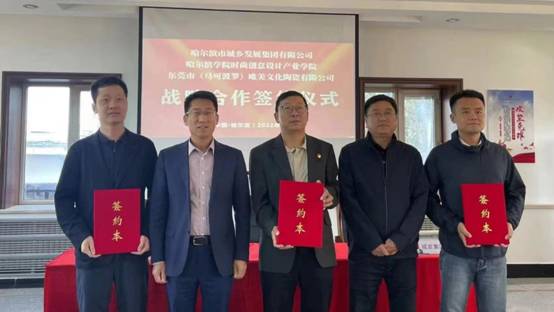 2022年9月18日,“哈尔滨印象”主题文创项目“战略合作签约仪式”在哈尔滨城乡发展集团会议室举行。哈尔滨学院艺术与设计学院党委书记孙国辉,哈尔滨城乡发展集团董事长李志刚、总经理唐鹤,广东(马可波罗)东莞市唯美文化陶瓷有限公司艺术总监、总经理助理袁林辉,马可波罗瓷砖黑龙江省总代理杨建军出席了活动。