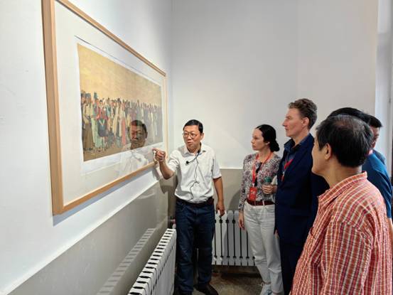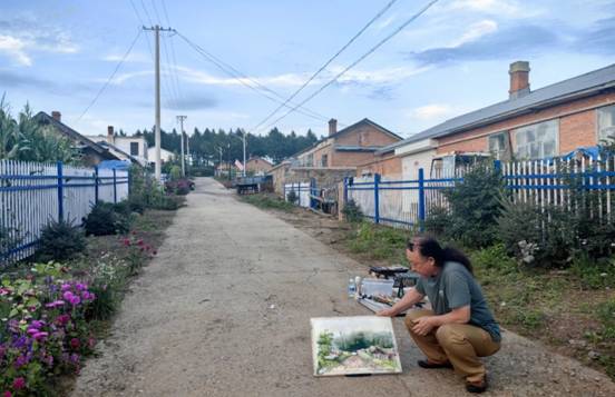 俄罗斯艺术家叶甫根尼·皮赫托夫尼科夫、马林娜·皮赫托夫尼科娃,黑龙江省美术家协会副主席孙作范、哈尔滨学院艺术与设计学院党委书记孙国辉、影像艺术系党支部书记董春阳、沈阳师范大学国画家陈崇宽、黑龙江四大精神文创展览馆创作员雕塑家于长平、哈尔滨学院时尚创意设计产业学院特聘教授宋荣丹、逊克县博物馆馆长于霏萌等在中俄油画文化创意设计产业中心进行了联合创作艺术交流和笔会活动,共同创作了《为抗战胜利喝彩》等十几幅作品。