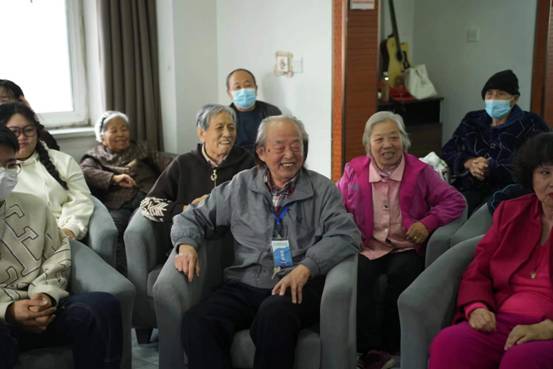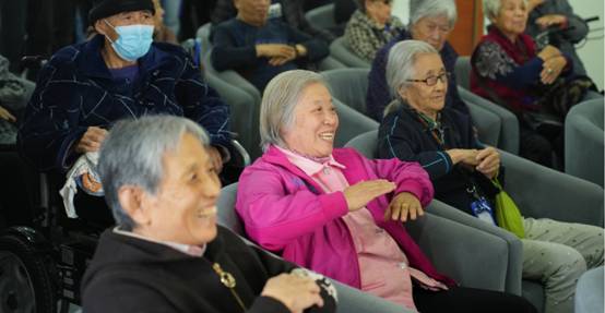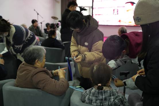 此外,学生们还组织了一些互动活动,用看图猜成语、击鼓传花的方式让他们参与其中,增进彼此之间的交流。活动现场掌声和笑声不断,洋溢着欢乐和幸福的氛围。