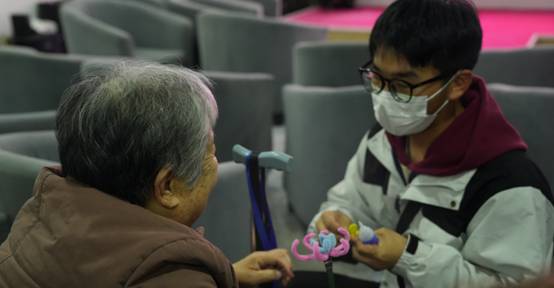 除了精彩的节目,同学们还为老人们准备了手工制作的香囊、祝福卡等重阳节礼物,在温馨的氛围中,与老人们一起制作手工花,共同感受节日的欢乐。老人们纷纷表示,这样的活动让他们想起了自己年轻的时候,充满了对生活的渴望。