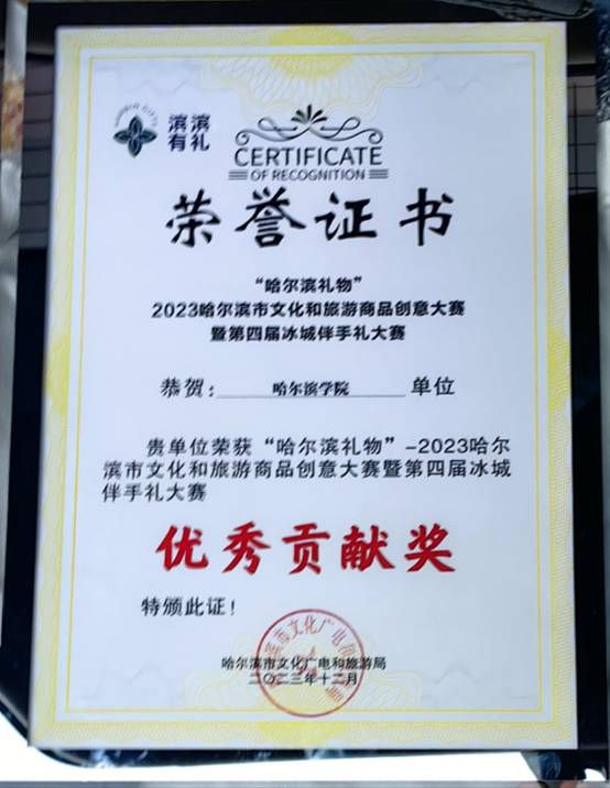 哈尔滨学院艺术与设计学院党委积极协办哈尔滨冰雪文化活动,时尚创意设计产业学院组织创作团队进行冰城旅游纪念品的研发,荣获优秀贡献奖。