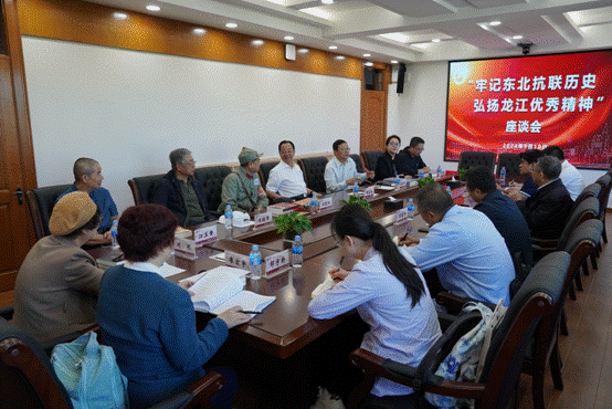 哈尔滨市政协副主席胡宝忠主持会议,介绍了我市及哈尔滨学院在东北抗联精神领域所做的工作。中国政协文史馆副馆长崔明森、馆藏部主任李春华、馆藏部五级职员蔡传强、馆藏部见习生郎宇新;省政协文化文史和学习委员会副主任张望朝、办公室一级主任科员王梓、四级主任科员贾孟亮;哈尔滨学院党委组织部副处级组织员、东北抗联老战士后代陈晨,艺术与设计学院党委书记、黑龙江优秀精神文创展览馆馆长孙国辉,艺术与设计学院副处级辅导员、黑龙江优秀精神文创展览副馆长郭鹏程,东北抗联后代代表、黑龙江优秀精神文创展览馆宣讲团副团长王晓江、江玉章和成员王昶军、刘颖、廖宏宇等参加了活动。