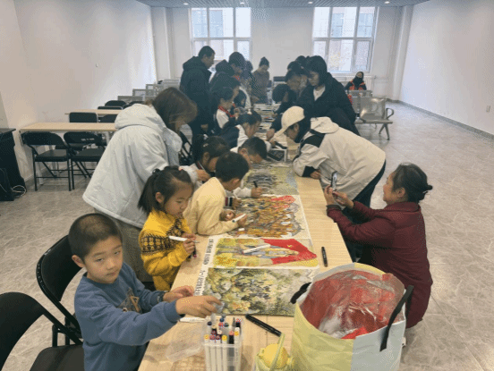 活动伊始,艺术与设计学院的学生志愿者与社区儿童齐聚社区活动室。他们围绕“东北抗联精神”这一主题,共同展开一幅洁白的画布。