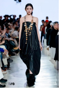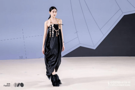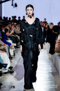 展出作品《黑土文脉》从赫哲族、鄂伦春、鄂温克三少民族的衣食住行中提取文化符号进行设计。运用鱼皮技艺、兽皮技艺、桦树皮技艺,结合激光烧花、激光雕刻、提花、植绒工艺。将黑龙江流域的传统文化、地域符号与当代流行服饰融合创新,对东北渔猎文明和非遗文化进行时尚表达。以当代视角审视传统,凝聚了对如何让东方美学活在当下、如何让本土时尚产业走向未来的思考。