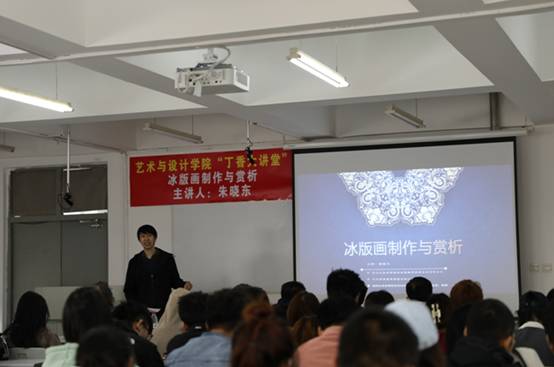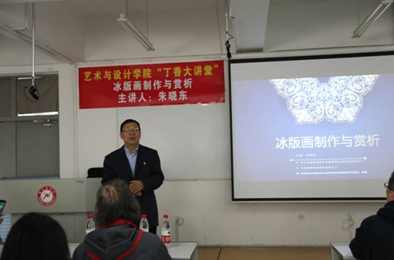 (文/王志海)4月27日,为学习贯彻中共二十大和省第十三次党代会精神,落实《黑龙江省冰雪经济发展规划(2022—2030年)》文件要求,弘扬哈尔滨冰雪文化,学习国际化创意设计理念,拓展冰雪文化,吸引、挖掘、培养、储备冰雪文化艺术设计、创作人才,助力黑龙江冰雪文化品牌形象发展,提升我校冰雪艺术国内外知名度和学术影响,推动哈尔滨学院冰雪事业高质量发展, 艺术与设计学院邀请冰雪大师、中国冰版画创始人、黑龙江省著名冰雪艺术专家朱晓东到学校“丁香大讲堂”授课。