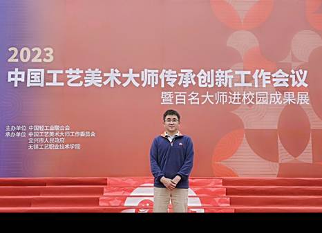 (文/田欣)为推动中国传统工艺传承创新,加快工艺美术人才培养和队伍建设,提升“百名大师进校园”工作水平,提高工艺美术大师传承创新基地建设质量,中国轻工业联合会于10月27日、28日,在无锡召开2023中国工艺美术大师传承创新工作会议,艺术与设计学院工艺美术专业程法伟老师代表学院参会。叶剑、程法伟老师,王建章、闫泓旭同学的作品参加了在无锡工艺职业技术学院举办的《百名大师进校园作品展》。