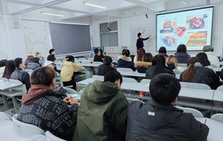讲座中,金媛善老师分享了她深入云南、贵州、四川等少数民族聚集地,搜集整理各个少数民族流传下来的拼布技艺、针法,以及她参加韩国、日本、新加坡、华盛顿等各国举办的拼布艺术展览活动所总结的创作经验。她详细阐释了如何在拼布制作过程中将更多具有中国元素的图样、色彩、针法融入其中,并引导学生们传承传统文化、研习古法技艺,从传统工艺中获取创新源泉。