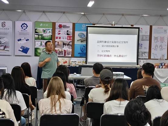 (文/冀德玉)2024年6月20日下午,艺术与设计学院视觉传达设计专业在实验中心视觉传达设计工作室406举办了《品牌形象设计实践与论文写作》讲座活动。特邀请黑龙江七善文化传播有限公司设计总监王永龙和刘新媛博士为师生作学术讲座,视觉传达设计专业全体师生参加了讲座,讲座由视觉传达设计专业主任冀德玉主持。