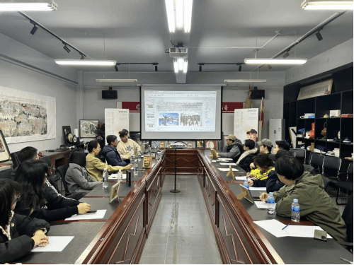 随后,他结合作品讲解纹理利用、色彩搭配及题材创新技巧,师生认真记录。体验环节,唐老师指导大家用桦树皮片、矿物颜料动手创作,师生在实践中感受非遗魅力,明晰传统工艺与现代设计的融合方向。