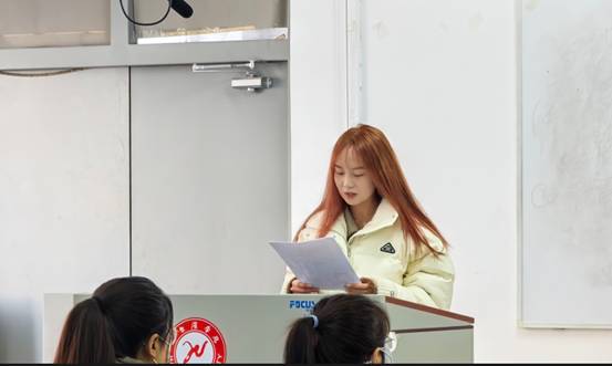 本次班会由21级服装与服饰设计班班长戴任杰主持。 首先,学习委员韩璐同学介绍了学风的概念和学风建设的重要性。强调良好的学风对于学生的学业成绩和个人发展至关重要。分别提出了应“学会学习”、“学会做事”、“学会做人”的三个关键提议,建议大家在学习的同时,应保持创新思维,发动主观能动性,有意的汲取、归纳和质疑,以此提高学习效率。此外,还要多元化的发展自身,全面提高个人素质,完善自身。随后,团支部书记杜建欣同学向大家发出学风建设倡议,全体同学共同宣读倡议书。