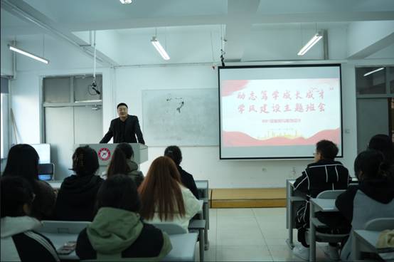 会议的最后学生处副处长张强与21级服装与服饰设计班全体同学探讨学风建设的重要性,他指出,要充分理解学风建设的必要性和重要性,学生要明晰学习目标,培养优良学习品质,全面参与学风建设过程中,成为学风建设的主导者。更要注重成效,压实责任,着力推进学风建设各项工作取得实效,深化学习阵地建设,强化学业管理服务,发挥榜样示范效应,要立足实际,科学谋划,建设和完善优良学风的长效机制。