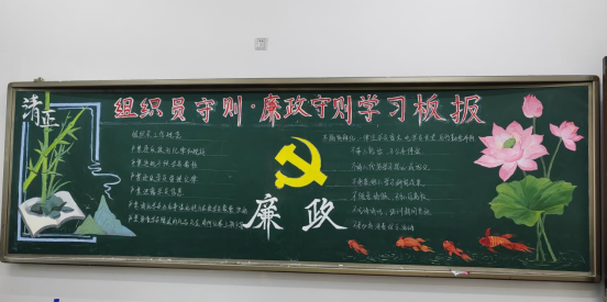 "为党育才、为党献策"主题则以绿色为主色调,运用山水、竹子、毛笔等元素,寓意培养德才兼备的人才,为党和国家事业发展贡献智慧和力量。板报内容强调了坚持原则、公道正派、严以律己、廉洁奉公的工作作风。