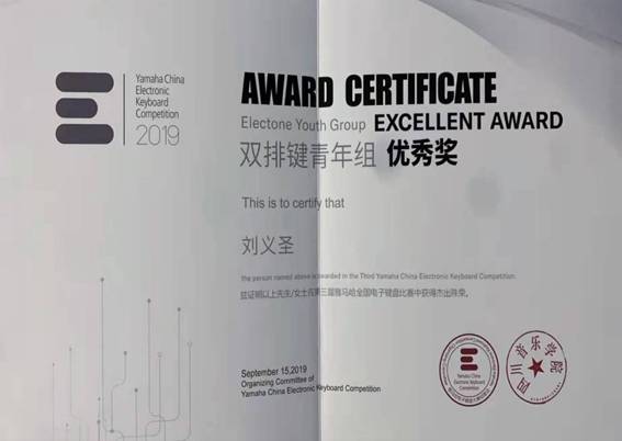 二十六、2019年6月哈尔滨学院学生苏诗海、刘义圣在四川音乐学院分别获得获得第三届雅马哈全国电子键盘(全国总决赛)双排键电子琴成人组第十一名和第十三名。