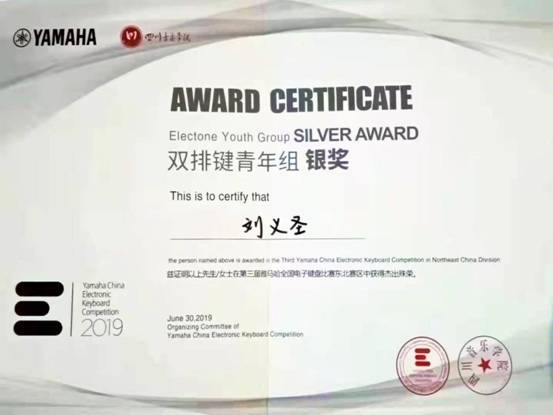 二十五、2019年6月哈尔滨学院承办的第三届雅马哈全国电子键盘(东北赛区)决赛,哈尔滨学院学生刘义圣获双排键电子琴成人组银奖。