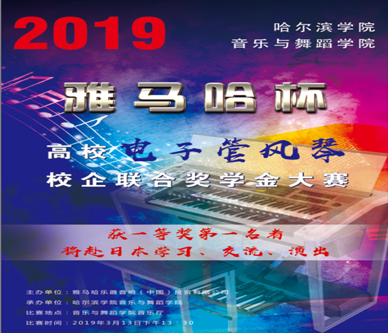 二十四、2019年6月哈尔滨学院承办的第三届雅马哈全国电子键盘(东北赛区)决赛,哈尔滨学院学生苏诗海获双排键电子琴成人组金奖。