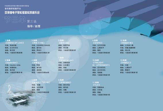 十、2015年12月哈尔滨学院音乐与舞蹈学院拥有《中央财政支持地方高校发展专项资金音乐实验室项目》,双排键电子琴实训室落户哈尔滨学院音乐与舞蹈学院,成功举办双排键电子琴实训室九场系列音乐会活动,并完成活动画册,音乐会DVD九张。