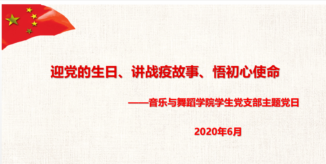 中国共产党的初心和使命是为中国人民谋幸福,为中华民族谋复兴,一代代中国共产党人在践行初心和使命中,带领中国人民闯过一道道难关,从胜利走向更大的胜利。七一前夕,为贯彻落实省委教育工委《在常态化疫情防控中持续发挥基层党组织和党员作用的具体举措》(黑教工委〔2019〕15号)决策部署,音乐与舞蹈学院党总支和所属党支部组织全体党员齐聚云端,通过党课进支部、抗疫故事会等系列活动,迎接党的99岁生日。