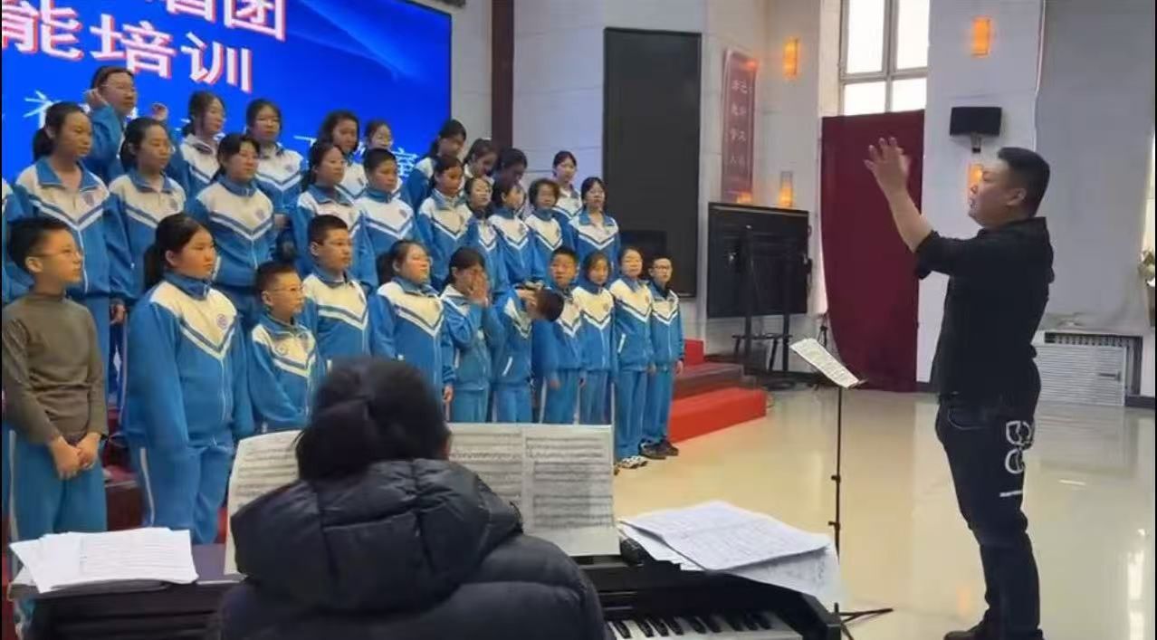 讲座伊始,韩杨老师与聆听的老师们亲切互动,通过一系列发声练习及合唱歌曲片段,深入浅出地为老师们讲解了合唱训练中的关键技巧。从如何调整学生的气息,到声音的方向控制,再到多声部之间的默契配合,每一个细节都透露出韩老师对合唱艺术的独到见解。他的讲解既富有理论性,又极具实用性,让在场的教师们受益匪浅。
