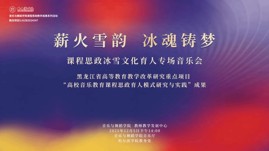本场音乐会既是黑龙江省教改重点项目“高校音乐教育课程思政育人模式研究与实践”的阶段性展示,也是学校构建“红色文化引领、冰雪文化赋能、艺术教育淬炼”三大育人体系融合实践的生动体现。