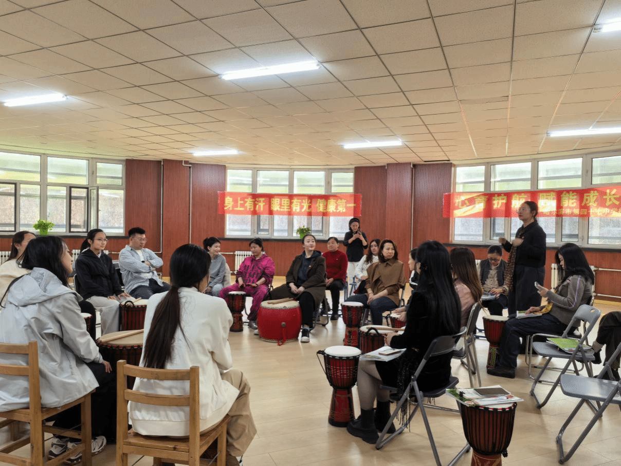 本次活动由党支部教师王宇博士主讲,以鼓圈疗愈为核心形式,开展了一场别开生面的艺术心理赋能实践。活动伊始,王宇老师结合音乐治疗专业理论与实践经验,向在场教师阐释了鼓圈疗愈在情绪调节、压力释放、团队协作等方面的积极作用,让大家对音乐疗愈有了更为直观和深入的认识。在实操环节,王宇老师循序渐进引导在场教师熟悉节奏、相互配合,从简单的节拍练习逐步过渡到集体合奏。伴随着富有感染力的节奏,全体教师手持鼓具积极参与、热情互动,在沉浸式的音乐体验中放下疲惫、敞开心扉,现场氛围轻松热烈、暖意融融。大家在协作共鸣中释放工作压力、舒缓紧张情绪,在欢快的节奏里增进沟通交流、拉近彼此距离。