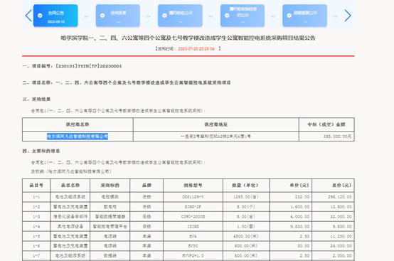 哈尔滨学院一、二、四、六公寓等四个公寓及七号教学楼改造成学生公寓智能控电系统采购项目结果公告