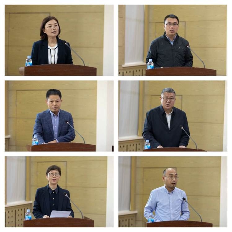 教学质量评估中心主任张迎宏对学校审核评估工作方案进行简要解读,信息工程学院院长王克朝、土木工程学院院长陶成云、艺术与设计学院院长霍炬、经济管理学院院长许淑琴、教务处副处长郭海龙作为学院代表和职能部门代表分别作表态发言。